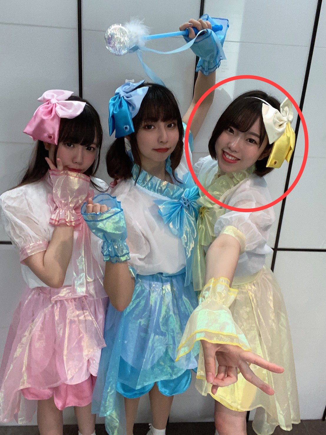看看這幾張照片,被我打圈圈的是誰?沒錯,她就是朝日りん(朝日鈴),不過在照片裡她是地下偶像團體「みらまじょ」的成員「新井凛」,這個團體是在去年9月底第一次唱LIVE,然後今年1月11日就解散了⋯Orz