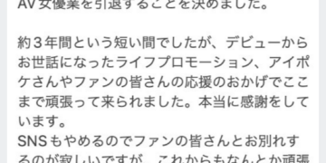 其實昨晚業界就傳出楓カレン(楓花戀)應該回不來的消息,所以昨晚在介紹女優卡的時候我就註明她可能無法配合宣傳;而在引退聲明中她只說這三年來很感謝事務所Life Promotion和片商Ideapocket的照顧,接下來她會關掉所有社群帳號,為將來的人生好好努力⋯