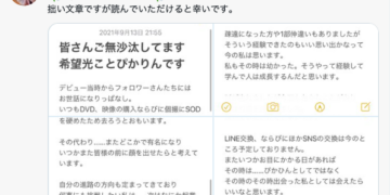 各種素人類企劃、需要找人湊數的合輯或大亂交合戰都需要像希望光這樣的女優,所以出道一年多來她作品不少、twitter也累積了近1.5萬的追蹤。但你說這樣的日子很棒很有希望嗎?非也非也,很諷刺地,從與藝名中又是希望又是光完全相反,希望光的引退公告其實可以感受到她的焦慮:
