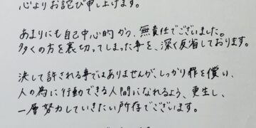 這是很日式的道歉方式,就是很用力地檢討自己,但你拿著這親筆信給不知道前因後果的人看他們根本不知道結城るみな(結城瑠美奈)犯了什麼錯,因為文中隻字未提毒品的事ー所以這封道歉信我認為結城要告訴大家的很簡單,就是「我回來了」:
