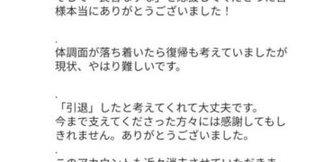 昨天她在IG說了,因為健康因素的關係,回歸(拍片)對她是難度很高的事,所以她要再度進入休眠狀態,IG帳號將會在不久後刪除……