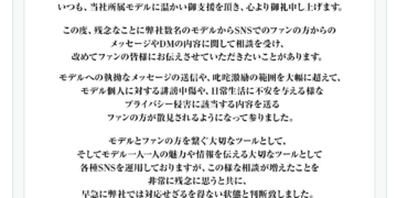 說了什麼呢?主要是針對粉絲在社群網站上私訊女優的問題:簡單說就是有些訊息超越了粉絲與偶像的界線,出現毀謗重傷以及侵犯個人隱私甚至是影響女優日常生活的內容,所以藉由這篇聲明,NAX告訴大家,接下來經紀公司將會這麼做: