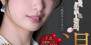 答案是「ATTACKERS 引退 女教師、お礼参り輪●。」:對,川上奈々美還是做アタッカーズ(Attackers)擅長的凌辱戲劇企劃,只是標題加上「引退」兩字ー片中川上奈々美是個迷人的女教師,她風情萬種又沒有架子,在學生之間超有人氣,甚至有情竇初開的小男生暗戀她並且以她為目標希望將來能一起當老師,只是ー