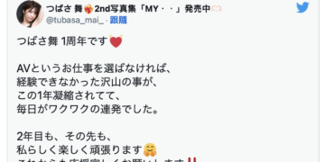 總計つばさ舞(翼舞)發了9支DVD,2本寫真,同時成為事務所8MAN的主力,和老大姐葵つかさ(葵司)一同組成了最具破壞力的8Womenー要我說她當然是發展不錯,twitter超過24萬追蹤、IG則有7萬粉絲在同期女優中算是表現十分出色的,雖然身分曝光讓大家知道她其實年紀不小28歲了而且還是個假奶,但她甜到會蛀牙的笑容和大長腿的修長比例都超超超超吸引人的,所以除了片子少了點(她不完全是因為AV新法的緣故而片子變少的)然後因為膚質緣故總是婉拒4K攝影外我覺得她發展算很順的,不錯。
