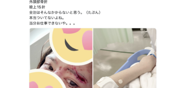 這真的太可怕了,經紀人有說這是有可能生涯全毀的重大傷勢,在這兒我只能祝辻井ほのか(辻井穗乃果)早日康復,然後,漂亮的臉蛋不要留疤啊。