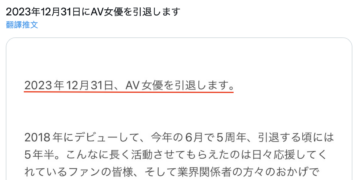 IP社專屬出道、後來曾在アタッカーズ(Attackrs)待了好一陣子的「結城のの(結城乃乃)」宣布將會在今年12月31日引退,她說到了今年6月就要出道5週年了,多虧了粉絲和業界的片商及事務所支持,自己才能在這一行待那麼久⋯