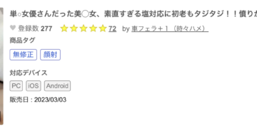 這是由無碼賣家「車フェラ+1(時々ハメ)」推出的作品「単○女優さんだった美◯女、素直すぎる塩対応に初老もタジタジ!!憤りが爆発!!大量顔射で一矢報いる。」(FC2-PPV-3195927),3月3日發售:從標題就可以知道幾件事,首先,這個女孩之前曾在AV界混過、還是個專屬女優(因為她是単○女優),再來,她人不太好聊,感覺很「塩」讓男優聊天完覺得很不是滋味,所以就被懲罰了: