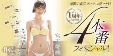 照Moodyz過去的作風,肯定要來個解禁來感謝影迷支持的,不過沒辦法,Moodyz已經不是過去那台解禁特快車了,所以我們只得到了這支「祝!デビュー1周年記念作品 1年間の成長ぜぇ~んぶ見せます!4本番スペシャル!」7個章節加4次本番性交的作品;不過話說回來,雖然沒能看到宮下玲奈被射得滿穴都是或是肛肛好小菊花綻放盛開變成黑洞,但這支週年慶的作品的分量仍然很大,內容很澎湃的: