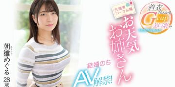 對不起,學姊我又褻瀆了你,但這個設定並非我胡意去蹭她,而是真的出現在E-Body的新人「朝雛めぐる(朝雛惠琉)」身上,G罩杯的她幾年前曾經擔任關東地區某地方電視台的氣象主播,因為就算包得緊緊的依舊能感受到奶子快把衣服撐破了而出名,只可惜後來結婚辭職回歸家庭,直到在淫光幕復出⋯