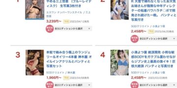 還有126天,就看看三上悠亜能不能維持這個買氣ー我是蠻看好的啦,因為就我所知她還有兩支共演大作還沒發出來,應該可以為生涯劃下完美的句點;而在三上之後呢?則是要看SOD Star,拜近來銷售策略改變所賜(作品先上串流再實體,實體還送內褲當特典),這家片商優秀的女優現在排名都嚇嚇叫,小湊よつ葉(小湊四葉)就不用說了,兩支作品一片第二一片第四,害我未看先猜累積銷售量的的月間AV女優排行榜冠軍鐵定是她的(結果是三上悠亜);而我家阿麗神木麗的週年慶大作「本能で絡み合う極上のランジェリー&オイリー4本番」則是衝到第3,目前就是SOD Star的第二人了;另外,包括紗倉まな(紗倉真菜)、星乃莉子以及恋渕ももな(戀渕桃菜)也都衝進了前十名左右,說現在SOD Star是銷售四天王鼎立絕不誇張⋯