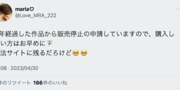 她在twitter上宣布,要把發售超過5年的作品下架了,請大家要買要快,不然以後只剩違法的網站才看得到了〜