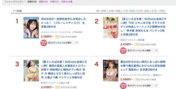 第一名自然是第一次和「素人」演出感謝祭的河北彩花,第二名則是SOD Star感謝祭最強共演的「THE ビキニ女子会 グラマスボディの仲良しツートップが豪華W中出し!」,對AV界稍有研究的朋友應該都知道這兩支作品對影迷荷包的殺傷力有多強。不過我的重點不是這兩支作品,而是一個好不容易終於重回戰線的女優: