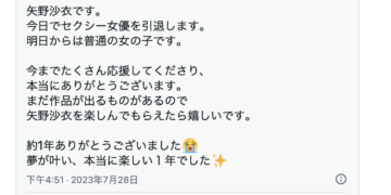好快,一年過去了,好快,矢野沙衣宣布引退了。