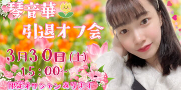 頂級片商Moodyz專屬出道、目前遊走於各片商發片的女優「琴音華」宣布將在月底引退,在經紀公司的幫忙下會有一場引退的オフ會(OFF會)和大家說再見: