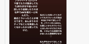 為什麼?因為她逛完超市被「堵」了,只能落荒而逃,在發文的時候還是忍不住心臟撲通撲通地跳個不停,因為真的嚇壞;而她也說,最近一個人私下(像是穿著睡衣散步或是遛狗閒晃)常被堵、被跟蹤、被偷拍甚至對著她大叫「是AV女優耶」的鳥事愈來愈多,但你知道的,AV女優嘛,所以社群追蹤不少但她們並不是網紅,很怕把事情說出來後酸民蜂擁而上搞得自己更不開心所以MINAMO不敢講,這次真的是受不了⋯