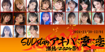 我們來看SOD集團要舉辦的「SODstar愛に戀~激熱の2024祭り~」:他們動員了幾乎所有的專屬女優到秋葉原舉辦活動,兵分二路分別在11月30日和12月1日和大家見面,而之前與逢沢みゆ(逢澤美優)同一家經紀公司、同樣是alp所屬的「矢埜愛茉」將會在第二天登場,與紗倉、小倉、本庄、唯井、青空、夏目、神木、渚以及彩月一起一起舉辦活動: