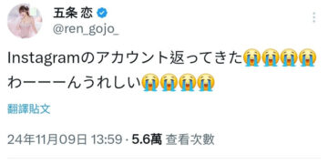 更慘的是登入的電子郵件地址以及電話也被改了,所以那時候五条恋是叫天天不應叫地地不靈,只能號召粉絲寫信給IG要求歸還帳號ー原本我以為這招沒用,想不到沒過幾天帳號就回來了,所以你可以看到頭像又變回五条恋本人了…