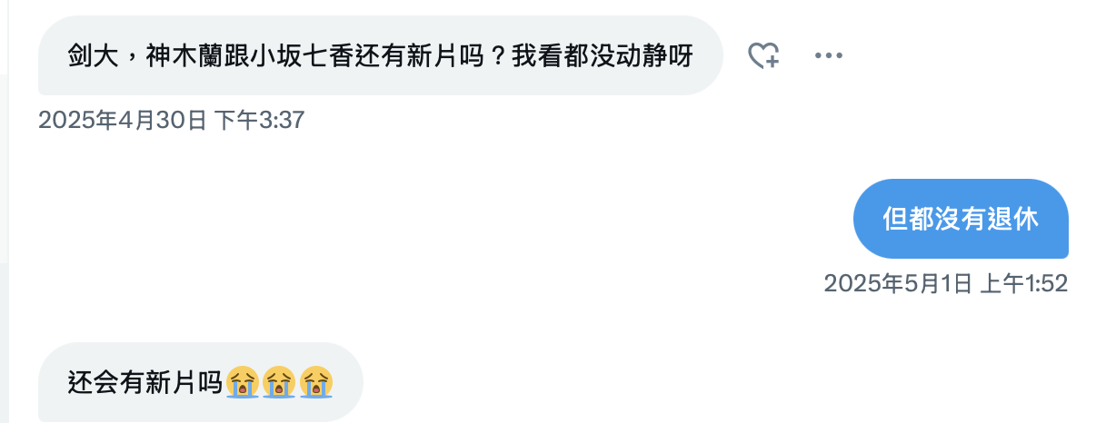 表面上這是一位疑似引退的女優,作品只發到4月的「嫁の連れ子(反抗期)が常に無防備ノーブラぽろり 美白肌ピンク突起に我慢できず乳首こねくりイタズラでチクイキを覚えさせてヤッた…」,社群(https://x.com/nanaka_catt)也老早就不更新了,或許來信的朋友只是想和我確認,小坂七香回不來了對嗎?