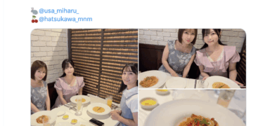 是誰好久不見呢?是2014年在片商Moodyz專屬出道的「初川みなみ(初川南)」,她是和小島みなみ(小島南)以及羽咲みはる(羽咲美晴)一起聚餐吃義大利麵然後留下了美麗的合照⋯