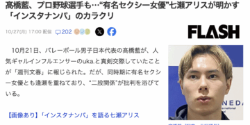 雖然八卦雜誌的文春炮是上禮拜的事了,不過還是有很多人好奇,從末広純(末廣純)到河北彩伽,是用什麼管道和那些高大威猛的職業球員搭上線的?我是覺得有人在仲介,不過七瀬アリス(七瀨愛麗絲)是這麼說的: