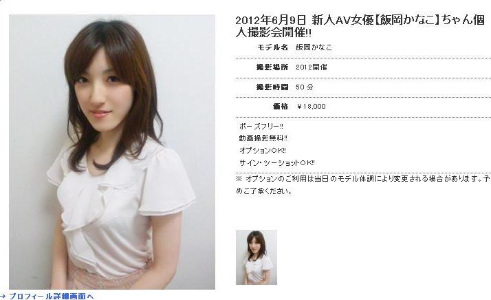 飯岡かなこ(飯岡加奈子)當然是個化名,她大概是在六月底七月底的時候在攝影會上現身,當時用的身份是「新人AV女優」,也差不多於此同時,她以「藤原遼子」的身份在東京很熱步兵營「世界出道」!