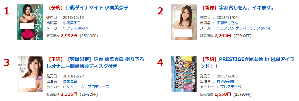 這個成績有多強呢?簡單地說就是幹掉了Prestige的年終大作「PRESTIGE専属女優 in 風俗アイランド!!」、也把後藤理沙在Muteki的作品甩在後面,而且更扯的是她還有一支藍光版的作品拿下了第9名,我是不知道這成績能維持多久,但就現在來看她就是12月買氣最兇猛的新人: