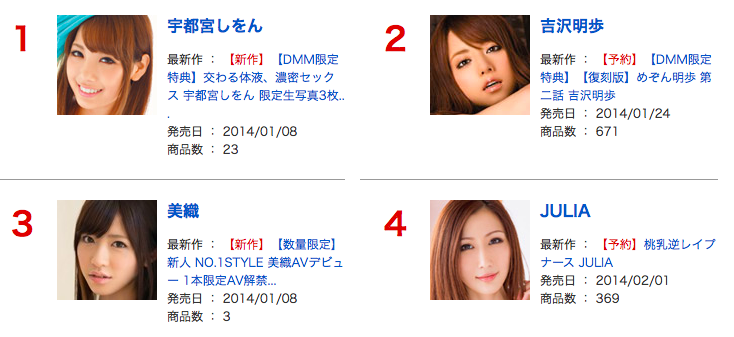 ImageImage  結果她就拿下了上個月DMM的銷售冠軍,而且就算把所有的作品都加進來、也只有「宇都宮しをん(宇都宮紫苑)」和老大姐「吉沢明歩」贏過她!