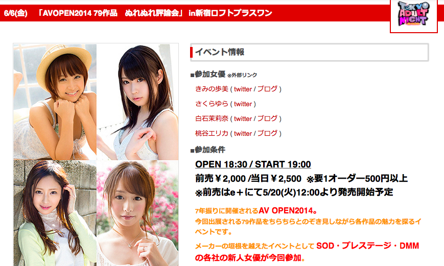 這大概就是Moodyz要吸收她的原因,雖然AV Open之前因為SOD買榜被抓到搞到玩不下去有點糗,不過在今年大家都要玩頒獎典禮的大型活動下這個停辦七年的活動也終於得到重起爐灶的機會。而且除了四大代言人きみの歩美(紀見步美)、白石媽媽茉莉奈、さくらゆら(櫻由羅)以及桃谷エリカ(桃谷繪里香)一字排開看起來軍容旺盛外從Moodyz和小向美奈子搞出一個這麼勁爆的「一億円の全身改造」活動來看各家參賽片商也是對這個AV Open的活動志在必得~