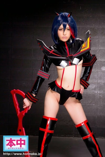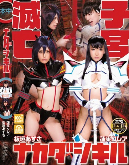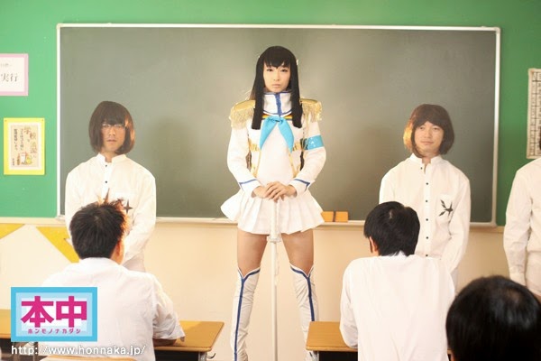 對動漫有涉獵的朋友一定知道兩位女優的造型是出自熱血動畫「キルラキル(Kill la Kill)」,只是為了避免麻煩,「本中」除了將作品名字改為「ナカダシキル(中出 Kill)」也將蓮実クレア(蓮實克蕾兒)模仿的角色從「皐月」改名為「沙月」(讀音相同寫法不同):
