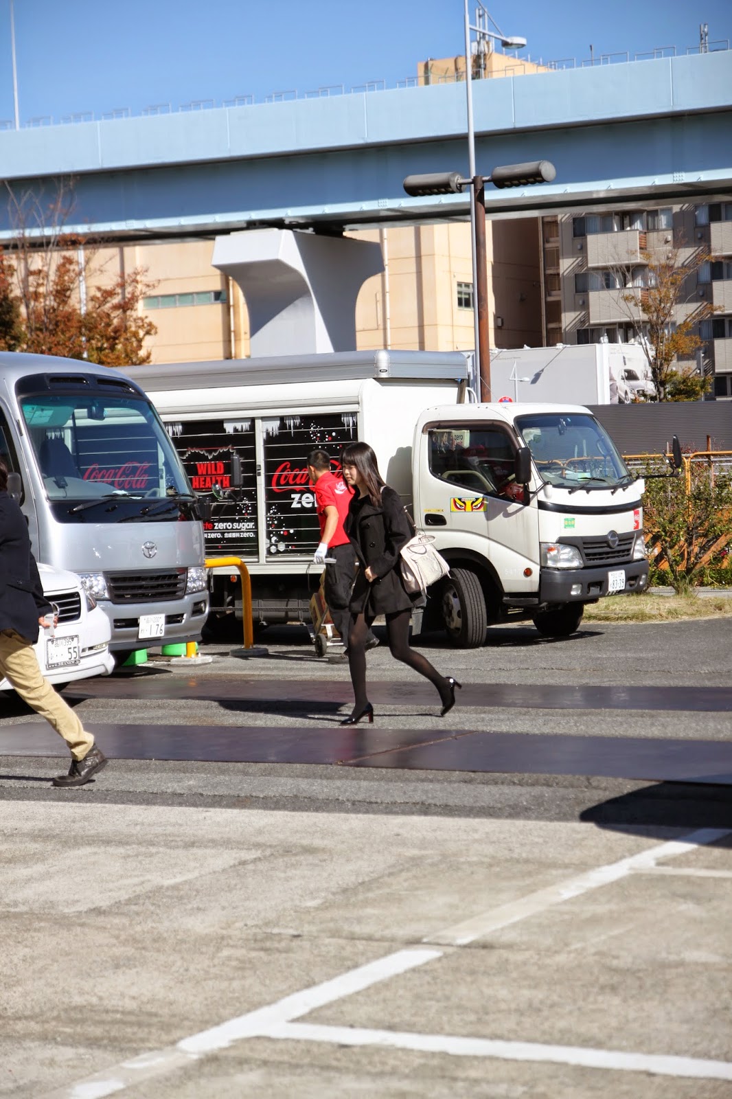 那坐車到場的有誰呢?這裡就給大家看兩位女優,套裝上衣加黑絲襪高根鞋的是Alice Japan的主戰女優「葵つかさ(葵司)」,她在做活動和私底下的時候都是一樣安靜少言,很難猜出她心裡在想什麼;至於個子高人一等的則是麻生希,她腿細得和竹竿似卻穿了雙非常大的鞋子,讓我以為自己是在看藤崎竜畫的封神演義呢。