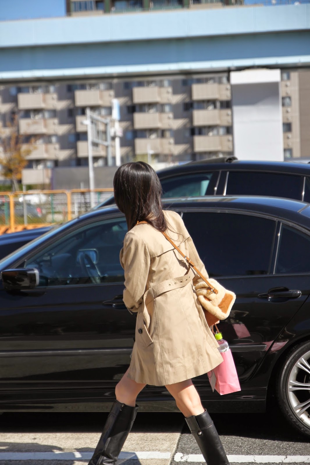 這是乙葉ななせ(乙葉七瀬),她就是典型下電車再慢慢步行到會場的例子,看到她的馬靴根子那麼高、走路像踩高蹺一樣還真讓人心疼….