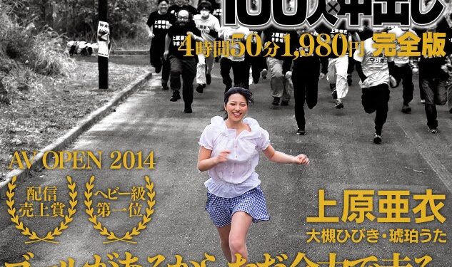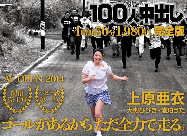 雖然在參加AV Open的競賽時並沒有列入最高等級的「スーパーヘビー級」,不過我想大部分的朋友應該都同意,由中出片商「本中」推出、上原亜衣主演的「100人×中出し」時應該是所有參賽片中最屌的一支作品: