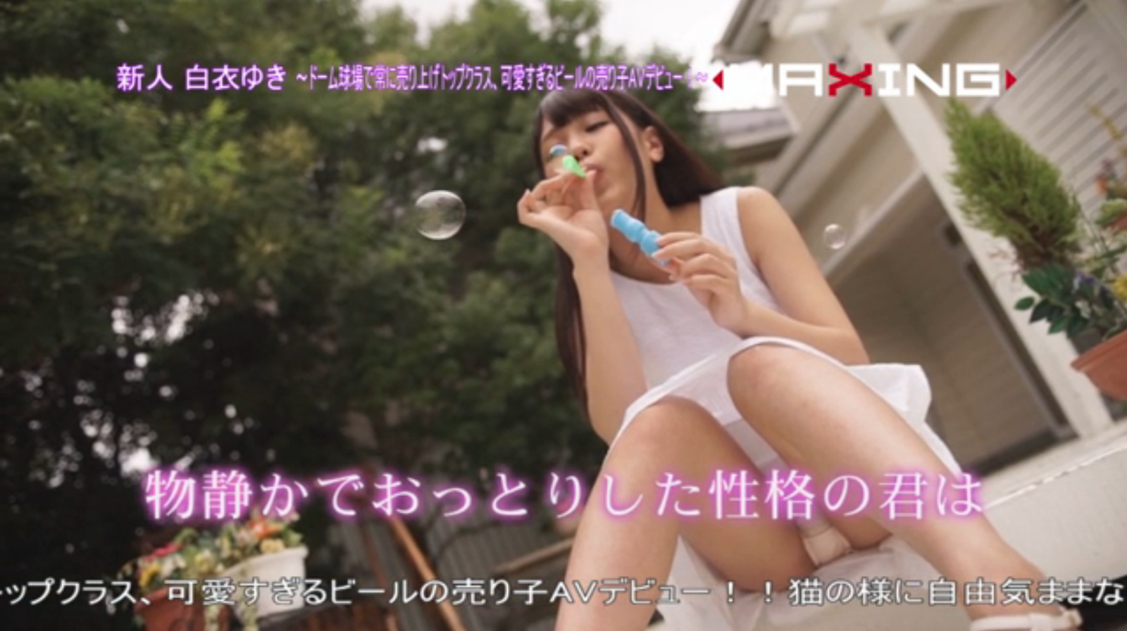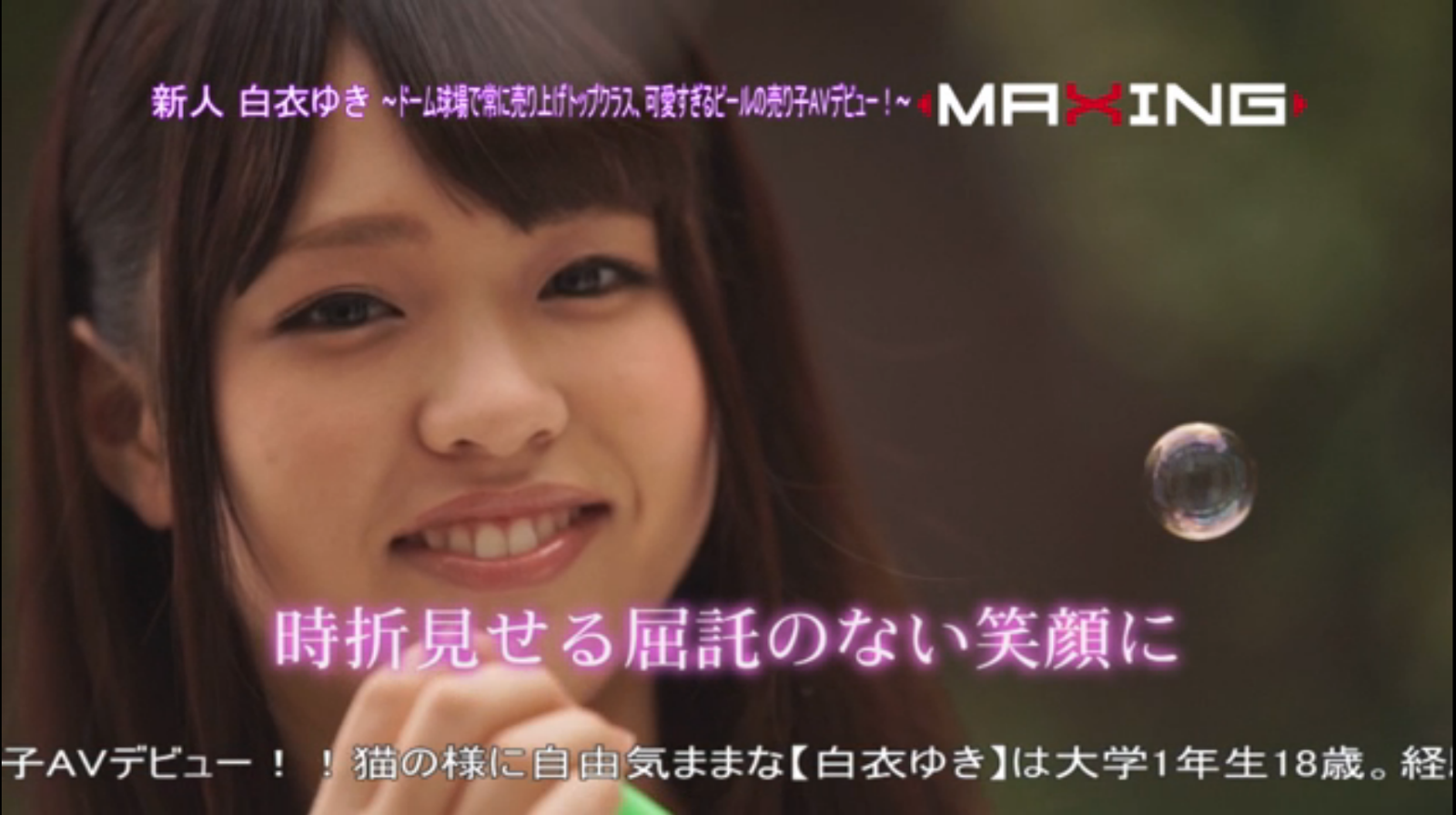 什麼?你問我這和這篇要介紹的AV女優有什麼關係?答案很簡單,因為片商Maxing要替出的新人「白衣ゆき(白衣雪)」就是在球場賣啤酒的打工妹!