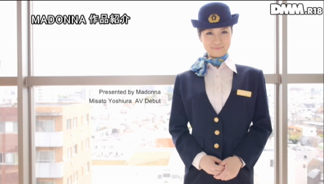 我說的是她於熟女片商Madonna的出道作「現役!!人妻新○線乗務員 超特急でAVデビュー」:怎麼樣?比起Premium的作品這支出道作的封面一樣很有誘惑力對不對?吉浦不只換上制服挑逗影迷的感官而且拍照的角度很容易就讓人發現她還真「胸」狠啊: