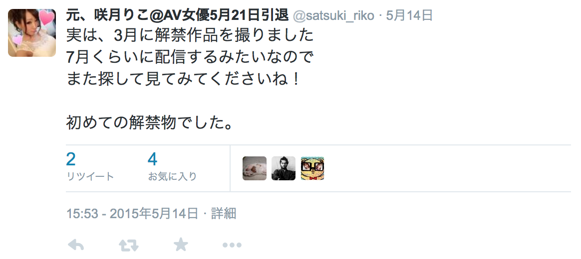 兩人的下馬都早在本站的掌握中,美星るか(美星琉花)在經紀公司確定是「Life Promotion」後我們就知道下馬不但是她必解的任務甚至去東熱出操也不稀奇。至於咲月りこ(咲月莉子)本站就更篤定了,因為早在引退前她就在twitter上有這麼一則推文: