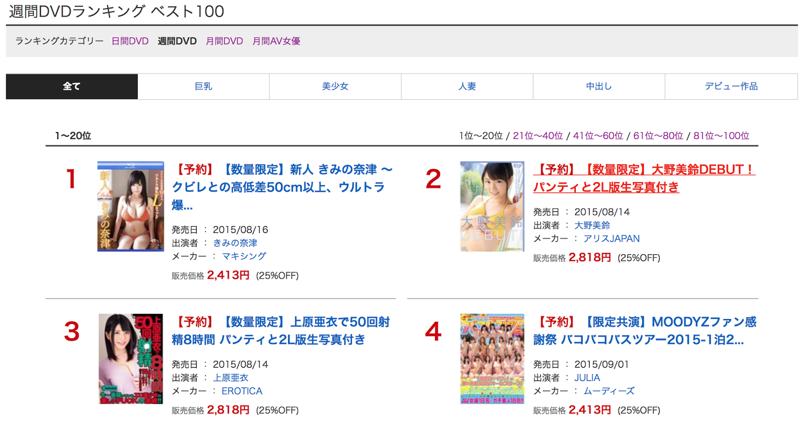 雖然失去主力女優「葵つかさ(葵司)」後很多人都覺得他們完了,不過看看上個禮拜DMM的銷售排行榜,老牌片商Alice Japan好像沒想像中慘嘛⋯