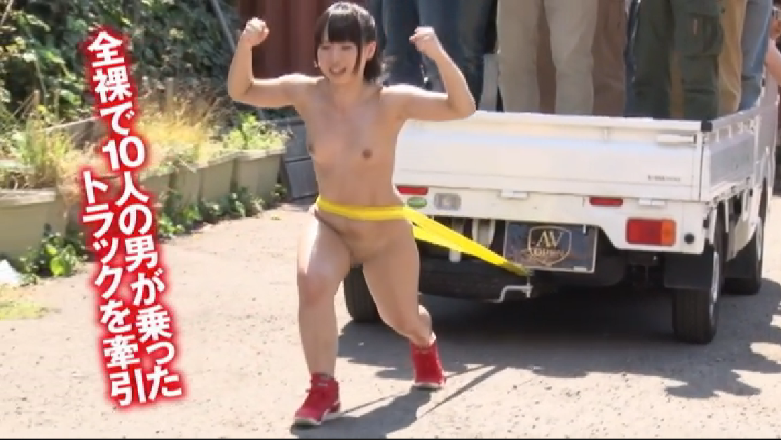 是不是明白了「少林正宗、大力金剛女」的意義了?這是一支很恐怖的作品,原來這位小蘿莉身懷絕技,不但可以一個人拉動上面載了10個大男人的貨車而且「屁股」也很發達,用兩片屁股肉夾住繩索也能拖動輪胎,真是厲害非常非常厲害~